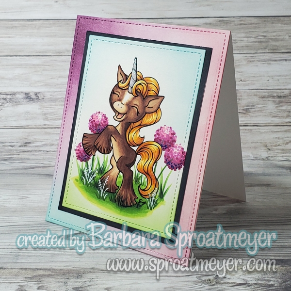 The Unicorn Rearing digital stamp is available from Sproatmeyer Stamps and is currently offered at an introductory discount—perfect if you’ve had your eye on it! To finish the card, I paired the image with metal dies from Whimsy Stamps, which added just the right amount of detail and elegance to the overall design.