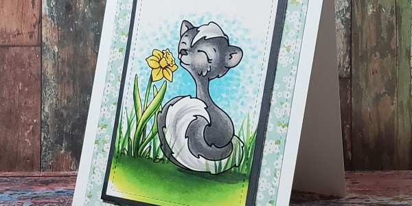 Metal dies from Whimsy Stamps was used to create the card. At Sproatmeyer Stamps, add all three skunks to your cart and get Skunk Love for free! The third skunk is Sky Skunk.