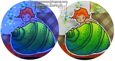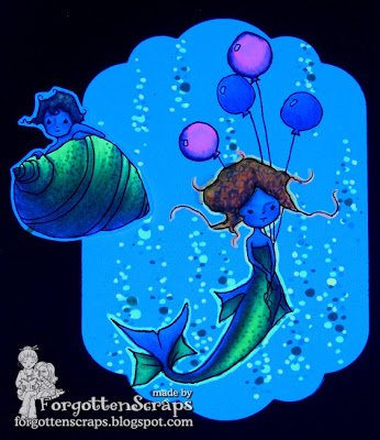 The images I used are Birthday Mermaid and New Shell Baby G from A Day for Daisies. The paper were just a bunch of scraps I had which always feels good to use them up…. the orange is even from Halloween! Then a diecut and some pearls finishes off this card for an underwater adventure.