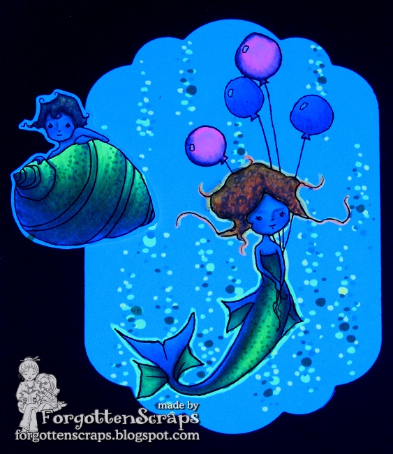 The images I used are Birthday Mermaid and New Shell Baby G from A Day for Daisies. The paper were just a bunch of scraps I had which always feels good to use them up…. the orange is even from Halloween! Then a diecut and some pearls finishes off this card for an underwater adventure.