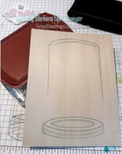 STEP 1: My first step was to stamp the Mason Jar twice so that I could create it upside down. The original jar’s lid has the perspective of being on top so I couldn’t just flip the jar around. I first stamped the bottom then inked part of the top and stamped it under the jar.