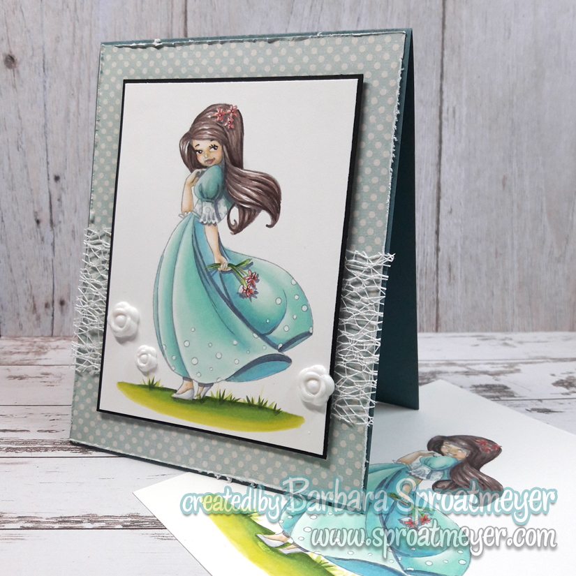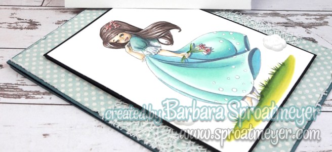 I think the papers are Sugar Rish from Basic Gray and the twill ribbon and pearls are from Stampin’ Up. I had this image colored up a while ago and so it was fun to be able to grab something and create a page in my journal right away. Although I did have to pause to color the background – but that wasn’t so bad.