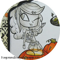 Main Stamp: Emo Halloweenies… Lola Mummy, Millerstein, Christian Vamp, Rio Devil, London Pumpkin (digi) and [altered images of] Betty Witch (SBS), Witchy Hut (EOD), Borders 2 (Kelly Panacci Sandylion Designs), Casper & Ghosts (123Coloring) and [portions of] Haunted Halloween House (MiC)