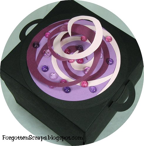 Here’s another view of the box open and a better view of the spider web. Each ring is held on by a looped string that is glued between the wall layers. This made it easier to thread the web and it also tucks in the box nicely.