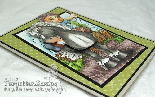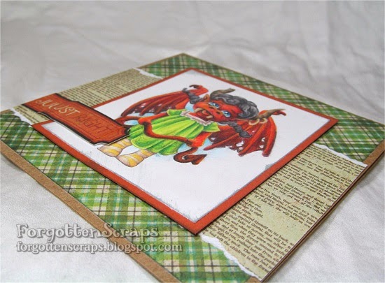 This is Cheeky Cherry Pie from The Greeting Farm and I thought she would be a perfect November project with her yummy baked pie. I wanted a harvest theme so I chose papers from We R Memory Keeper that had a good color autumn theme. However, I didn’t want everything to be browns and yellows so I added some green for a splash of color. And what color of hair goes best with green? Well, red hair of course!