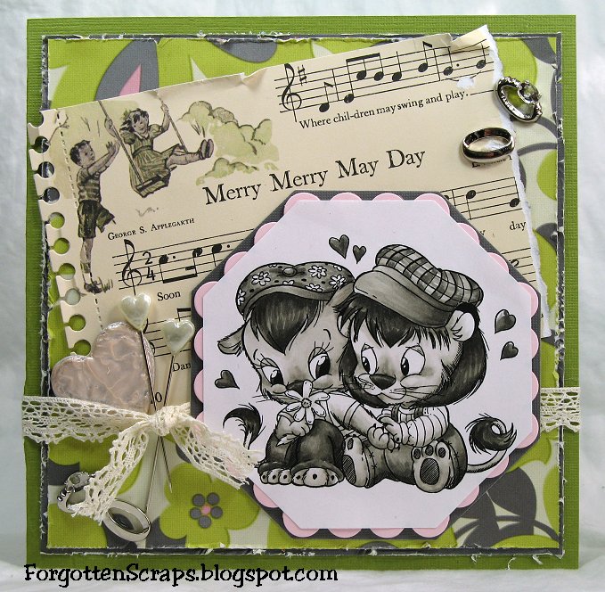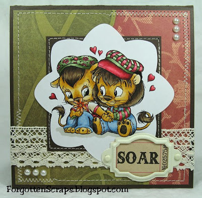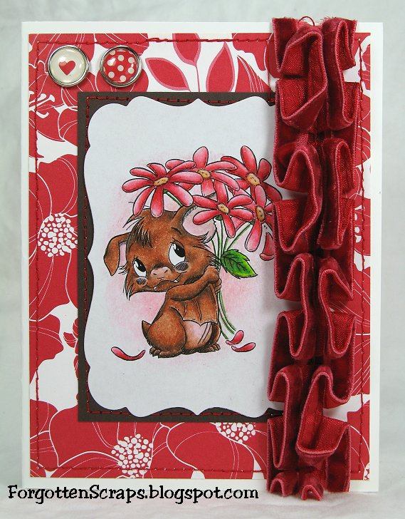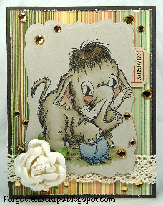 I can’t believe it’s Friday already and really don’t know where my week has gone. ;D This week at The Stamping Bazaar we have fun challenge for you and the theme is “Spots and Stripes.” I used decorative paper for the stripes and lots of amber gems for the dots. Also for something different, I stamped and colored Sammy on Kraft paper for more of a weathered look.