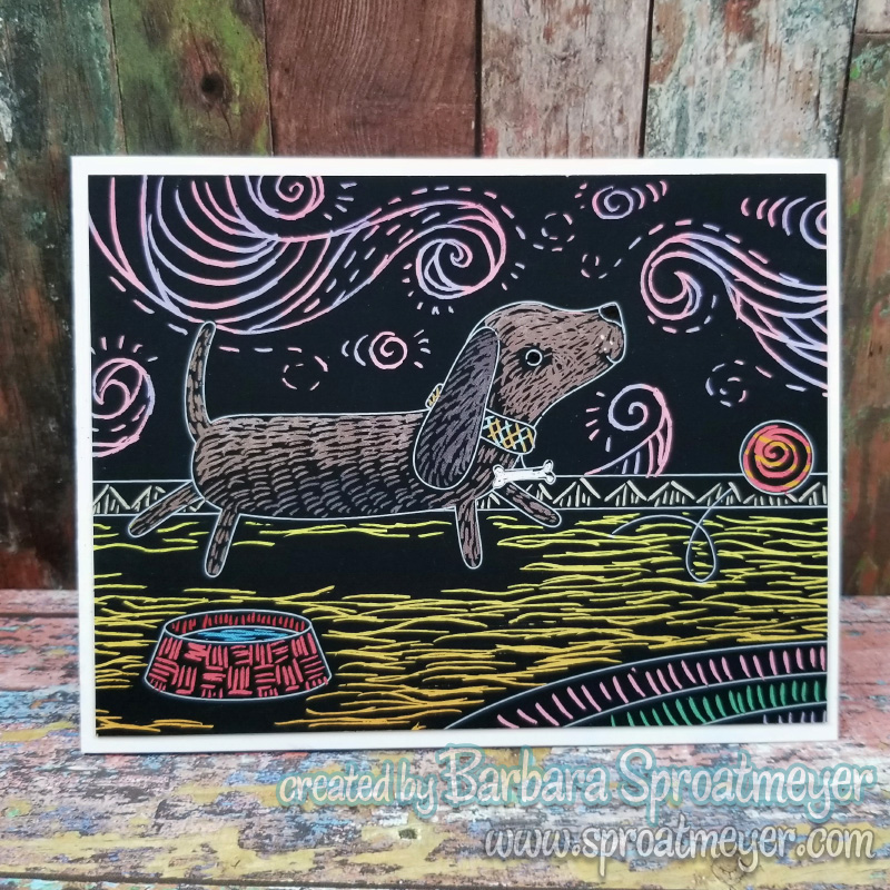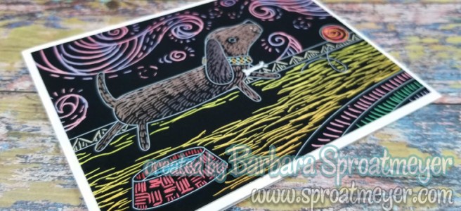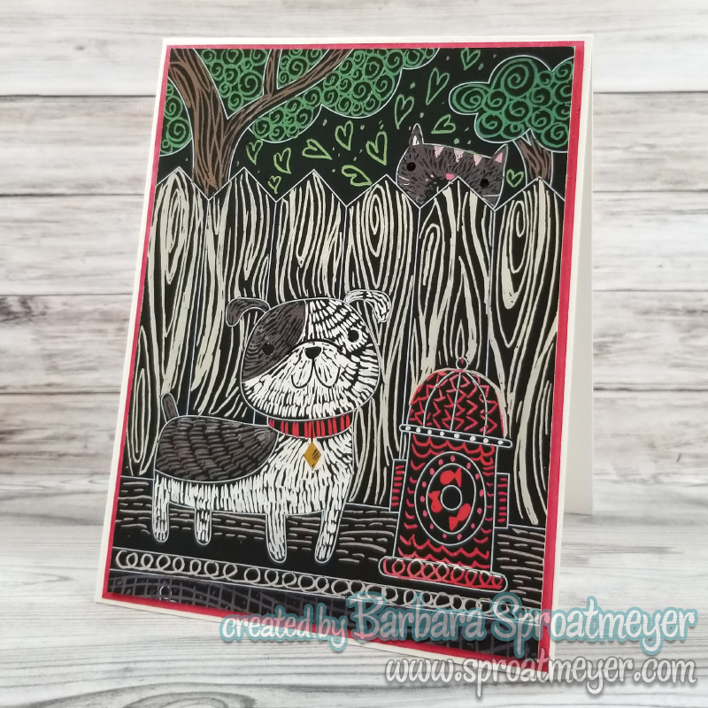 It’s always fun to shop in the store personally rather than online and pick-up because of the unplanned treasures found that inevitably increase the purchase price. That was just the case for this card when I spotted a Scratch & Scribble mini kit featuring Playful Pups. It reminded me of a project Sandy Allnock did recently and I thought it would be fun to try.