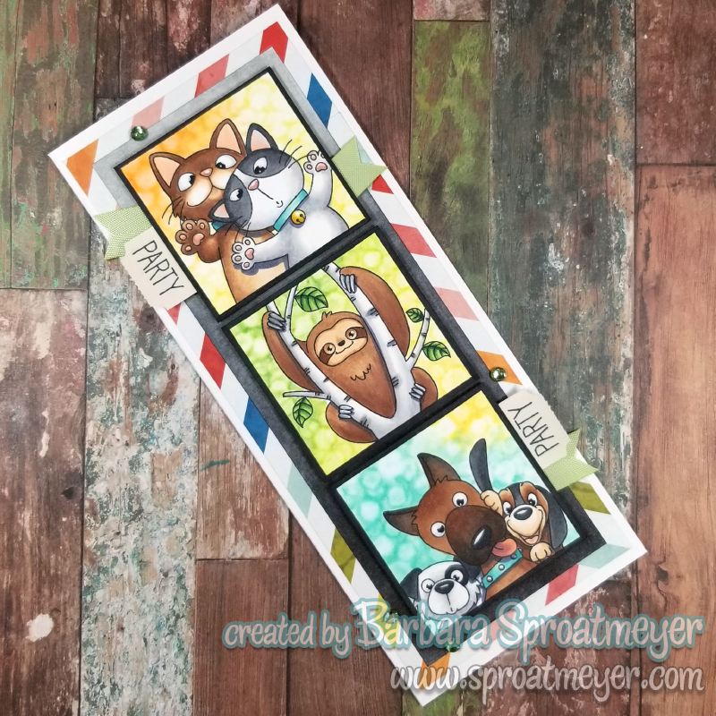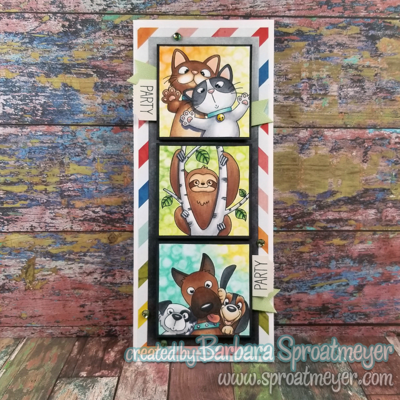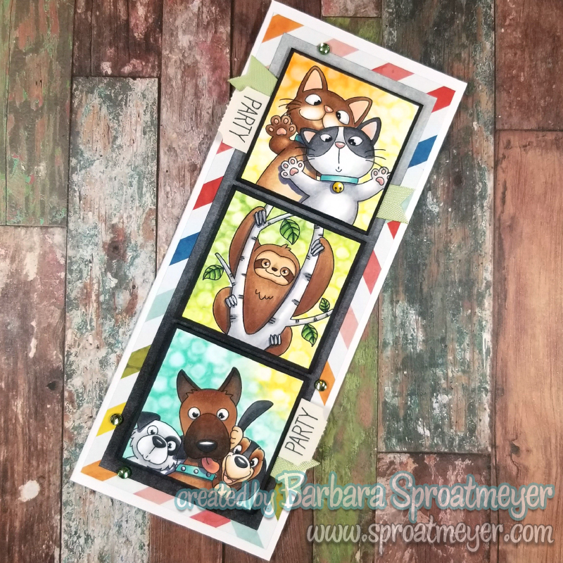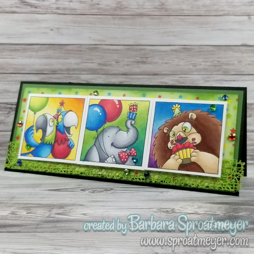 It’s a party! I couldn’t resist these animal characters to create a bright and cheery card on a slimline base. Sometimes the brighter the better and I purposefully chose bold colors for this one. Read below for more details on how I created this card using these key products: