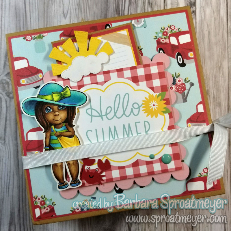 It’s day three of the Paper Nest Dolls’ Sun and Fun Retreat and if you’re lucky enough to have attended then this is a card you colored yesterday. On this project I’m using Bubbles Fun Owen from Paper Nest Dolls with paper and accessories from Echo Park “A Slice of Summer” series. My goal was to give some color to the bubble and reflect some of the elements around the character. I didn’t want realism but something that would convey the magic of summer. To do this, I added a mini rainbow in the bubble and then some white twinkles floating around.