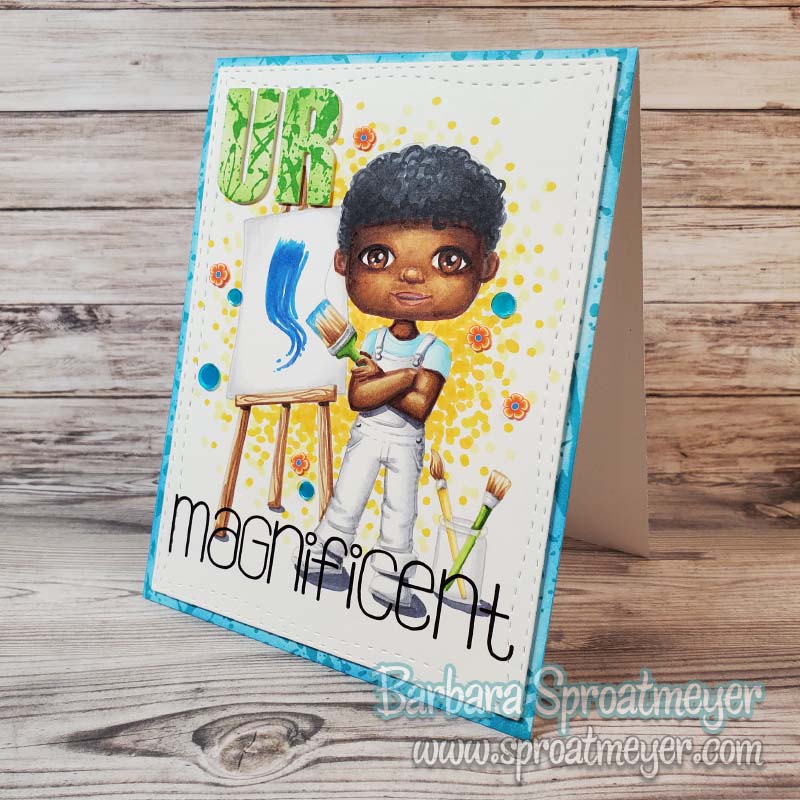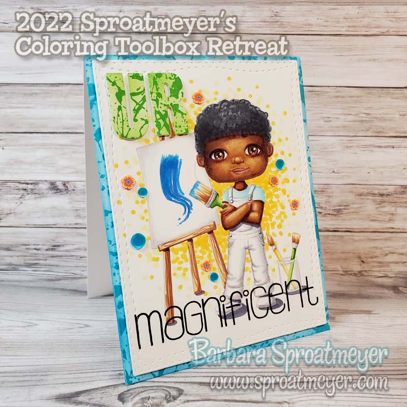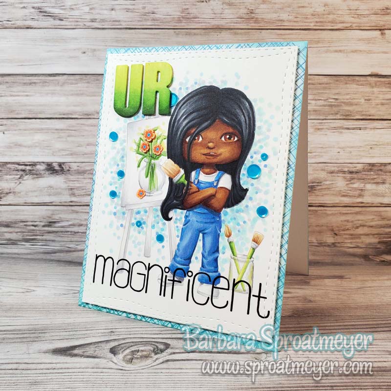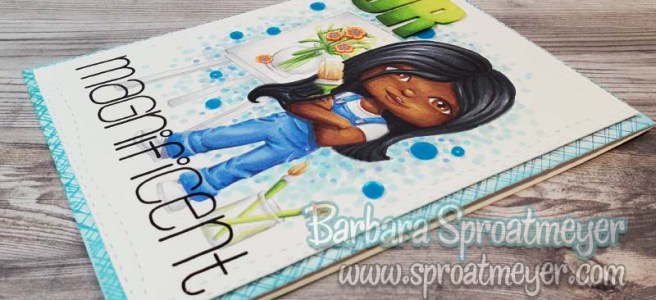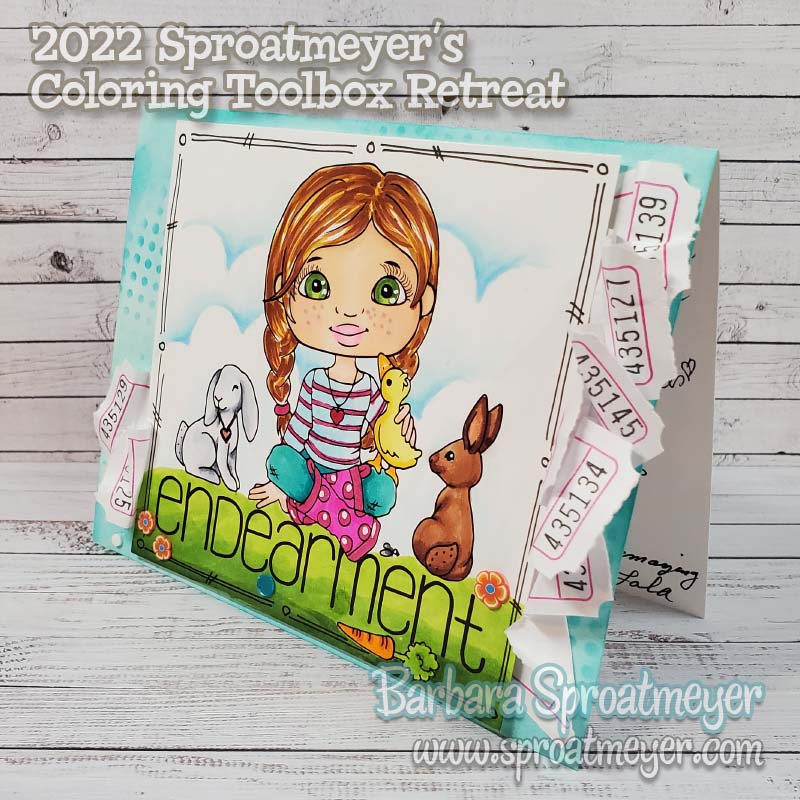 I’m coming back one more time with Polka Dot Pals Fern. I had an extra copy and decided I would take a time-out working and just color. I took inspiration from the gals at the Sproatmeyer Coloring Toolbox Retreat on how to color some elements such as the doodles around the border, red hair, green eyes, etc. You can buy Polka Dot Pals Fern here exclusively on my website. She has certainly been a fun one to color for me. 😀