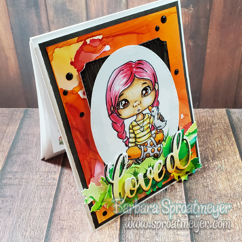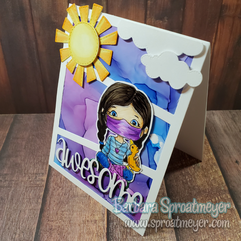 Here’s another Polka Dot Pals Fern project and this one was colored on Bright Creations alcohol Ink Art Paper. I thought I was getting a lot of choices to use with my markers but turns out that there are alcohol ink paper that isn’t for blending – and this is one of them. This type of paper works great for alcohol techniques such as the background on this card. But for blending – not so much. All the ink stays on top of the paper so you can push it around and create fun patterns. And now I know. 😉