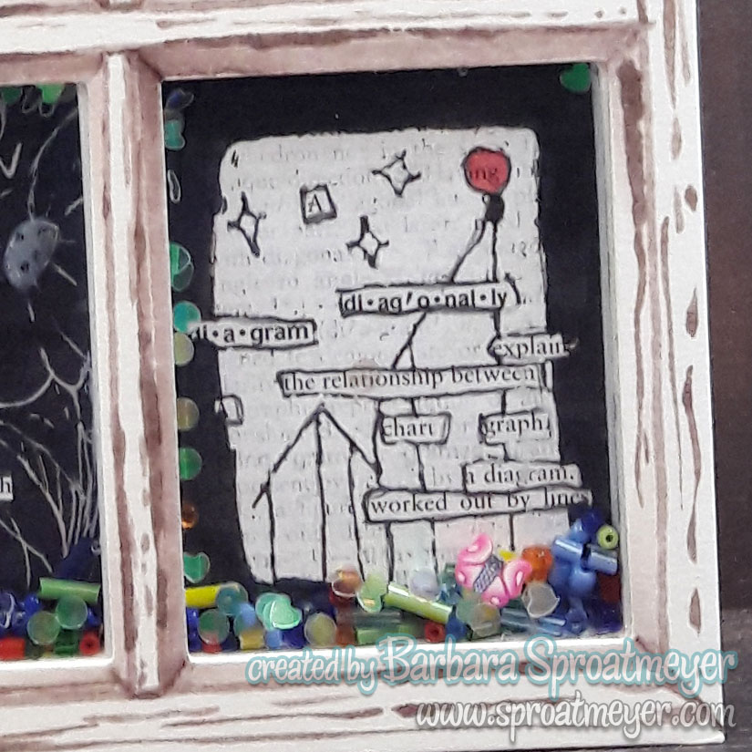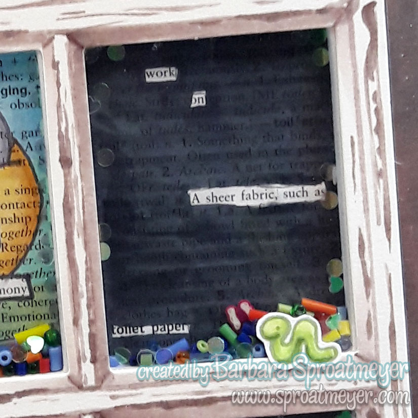 What are we doing this week in our house? More black-out poetry! We used a Window foam front from Queen & Co. to create a shaker card and each of us picked a panel to create our poetry. As customarily, we ripped out pages from my scrap dictionary and got to work.