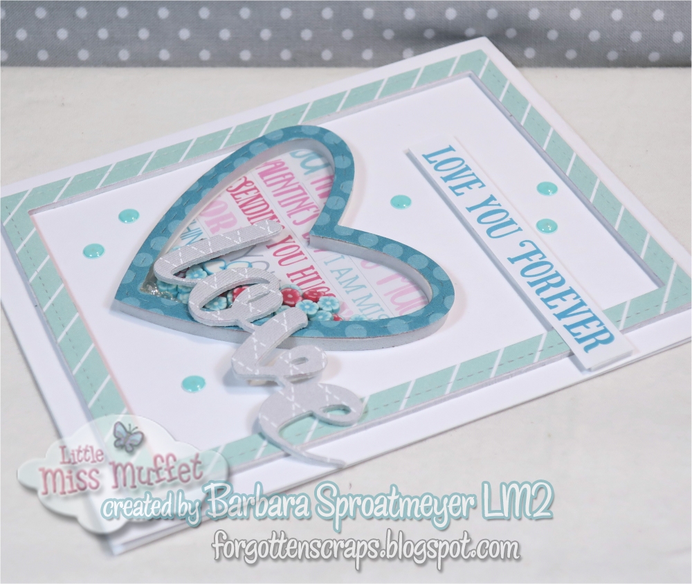 Here’s another card I created with the Heart Throb Kit from Queen & Company. I got the card layout and idea from Melissa Phillips from the Queen DT. Thanks for the inspiration! This year, I ended up create six or seven cards from the kit. I need to get some more shaker refills so it was a good break and I put the kit away until later.