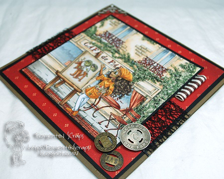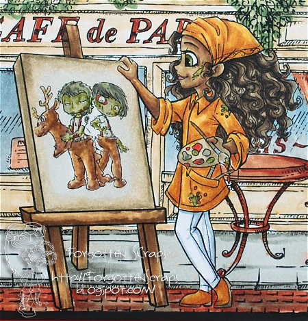 Are you ready for all the images? First there are three images from Simply B Stamps in the foreground which are Rudolph Head Caleb, Rudolph Tail Levi and Artist London. Then the background are Paris Elements in a pre-merged scene from Make it Crafty named Cafe de Paris Scene. I loved using the canvas on Artist London and the ideas are limitless. 😀