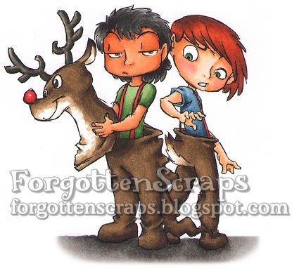 I’ve colored Caleb and Levi once before and de-zombiefied them which also turned out cute – these two are great either way! LOL The card I made with this can be seen HERE but you can see the colored image below as they figure out how rudolph works. But that’s not all, I have them HERE and HERE in their full zombi glory on a couple of journal pages I created!! 😀