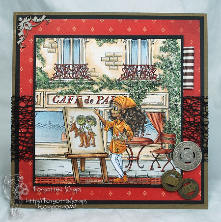 Are you ready for all the images? First there are three images from Simply B Stamps in the foreground which are Rudolph Head Caleb, Rudolph Tail Levi and Artist London. Then the background are Paris Elements in a pre-merged scene from Make it Crafty named Cafe de Paris Scene. I loved using the canvas on Artist London and the ideas are limitless. 😀