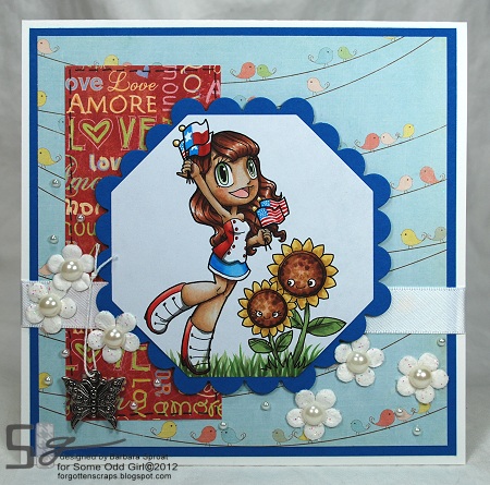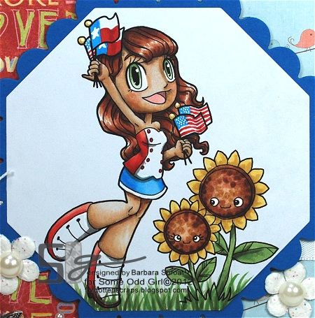 For today’s project I put together a fun festive card using Flag Waving Mae and Sunflowers from Some Odd Girl. Last week I noticed her in the SOG store and decided she would actually be very fun to color up and because her flags are blank, I was able to add a little bit of Texas flare. The Sunflowers are ones I’ve actually had on my list to color for a while now and it was fun to pair them up.
