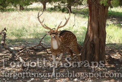 This animal is called an Axis deer but are also know as Chital deer or spotted Indian deer. They have a bright reddish coat marked with white spots that remain throughout it’s life and are originally native to India, Nepal, Sri Lanka. Did you know that Axis deer are good swimmers with no fear of the water? Also their fawns are protected by both parents, but stay close to mother. So what is one of these doing in Texas? Good questions, but first, as I was admiring this little fawn and taking pictures, I found this guy lurking next to the tree right beside us!