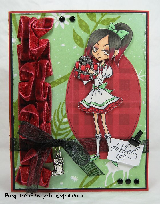 The challenge this week at Lil Lolita Boutique is to create a card or project based on the sketch provided. This is the last week of Lil Lolita challenges so I hope you can play along and give it a fond farewell- it’s been fun! I made this card and combined Lil Lolita Lylah (body) and Fashionette Lil Lolita 50’s Lilith (head) to make Lilah or maybe Lylith.