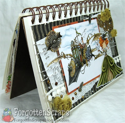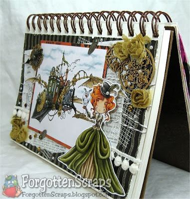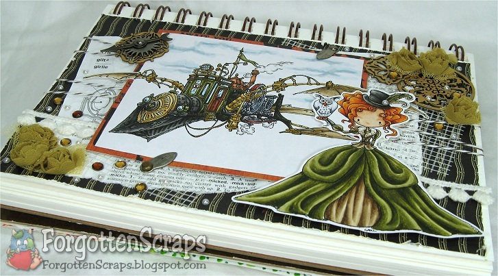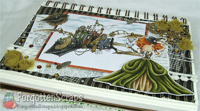 To add to the “attitude” I sketched in the skull on the door and went over it with a fine-tipped marker. Then I made sure I used one of my very few pieces of decorative paper with skulls on it, although I couldn’t help but to cover most of it up in the end. But don’t worry – I was still able to fit a few chippies in there. LOL