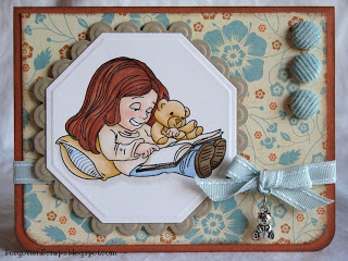 The challenge is to create a card or project using n element of three, which I used the three blue buttons.