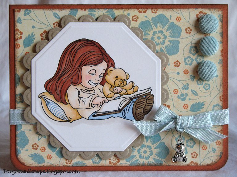 The challenge is to create a card or project using n element of three, which I used the three blue buttons.
